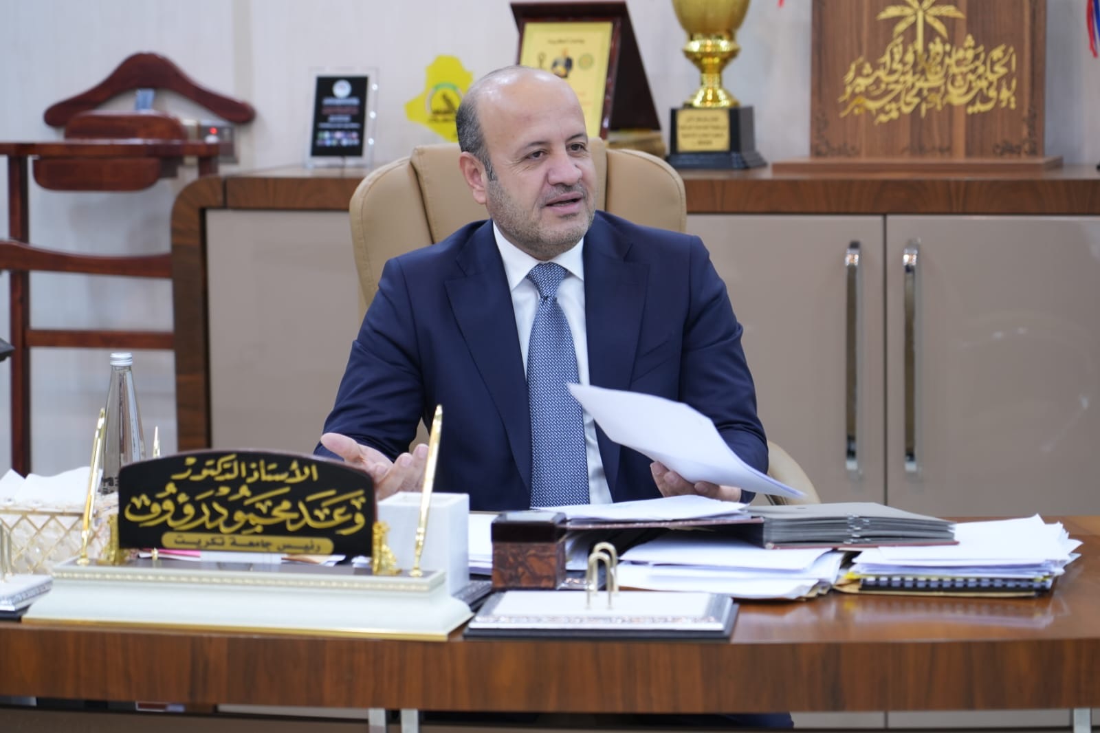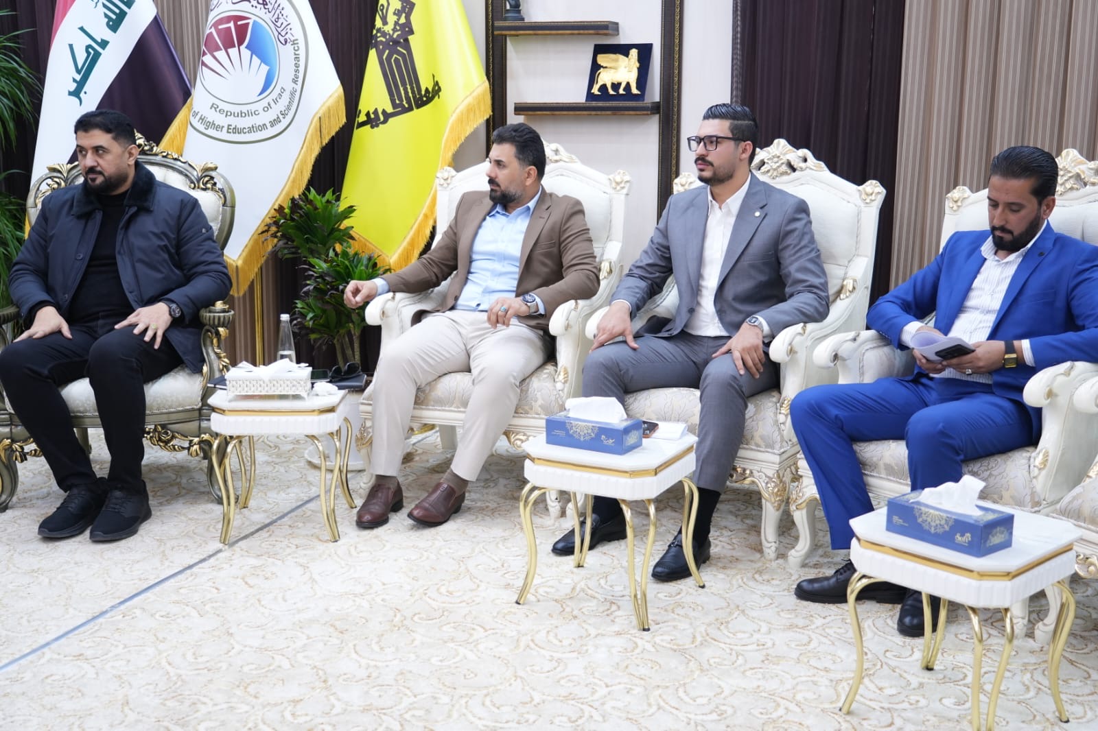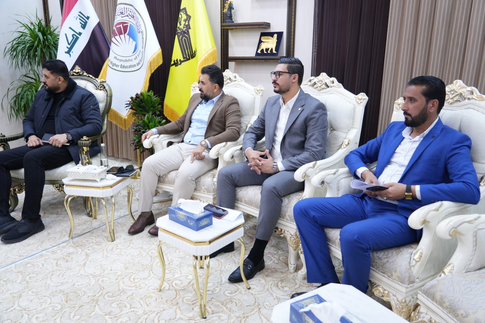 Tikrit University received today a delegation from the ministerial team affiliated with the Office of the Minister of Higher Education and Scientific Research / University Monitoring Department. The delegation was welcomed by the President of the University, Prof. Dr. Waad Mahmood Raouf, in the presence of Assistant Lecturer Qusay Mahdi Saleh, Assistant Director of the Monitoring Department at Tikrit University.