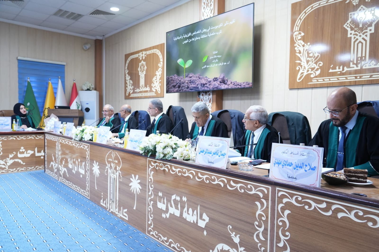 During the session, Professor Dr. Waad Mahmoud Raouf praised the research efforts of the student and the members of the examining committee for their serious scientific work, which contributes to advancing agricultural studies and addressing soil property-related issues. He affirmed the university presidency’s keenness to provide all necessary support to students and researchers in various specializations.