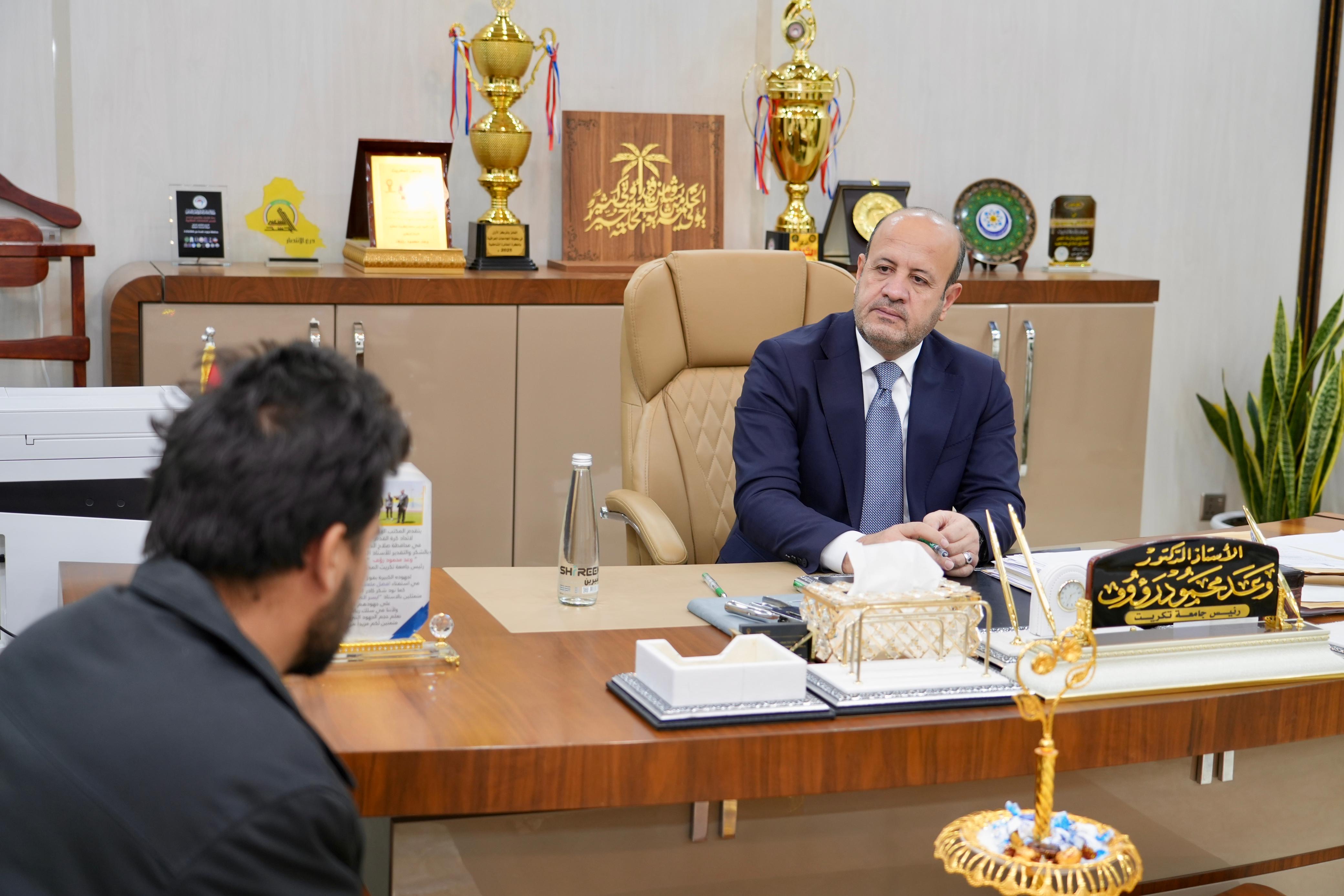 It is worth mentioning that the President of Tikrit University has allocated one day each week to meet with citizens, employees, and students in accordance with an established schedule and institutional procedures.