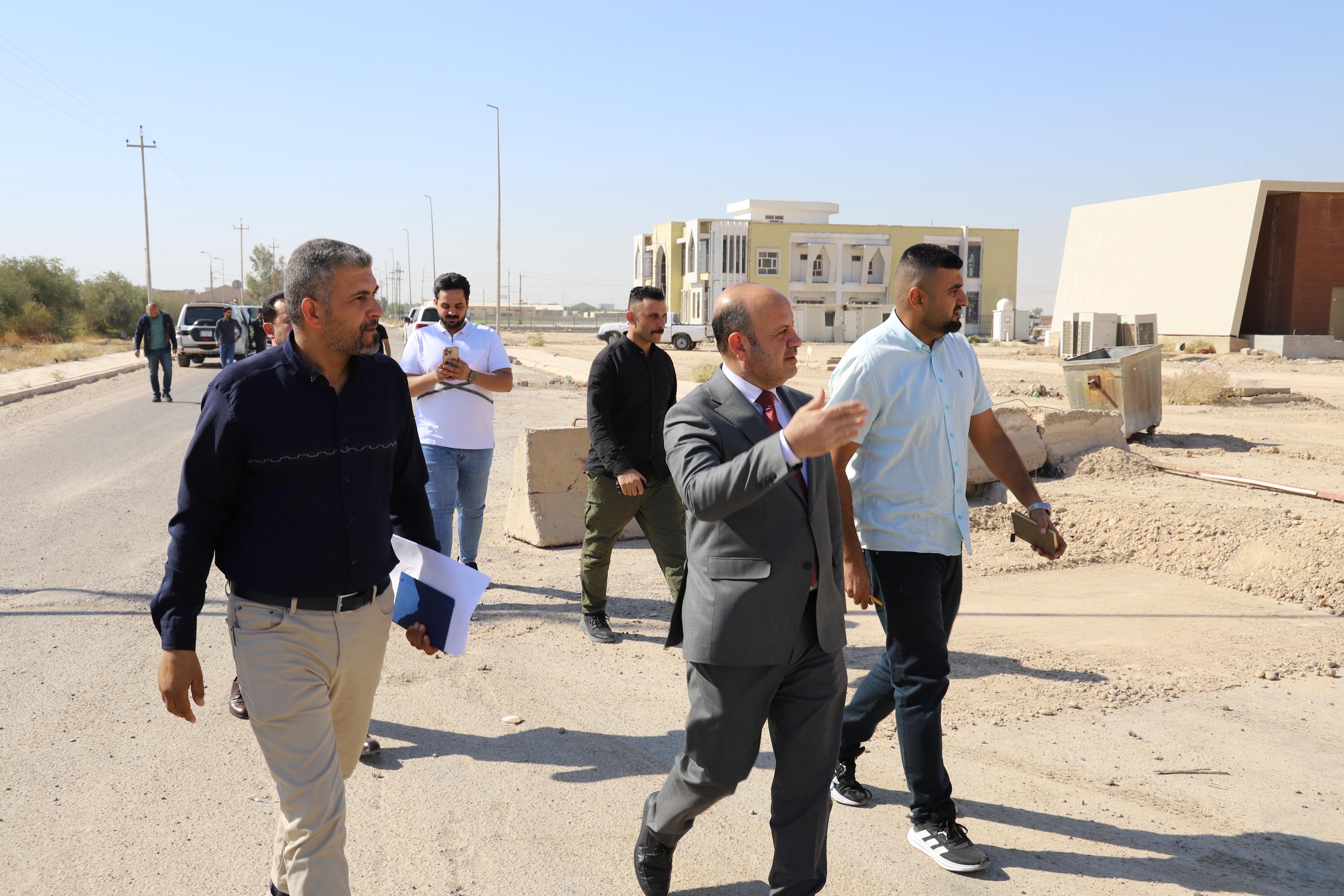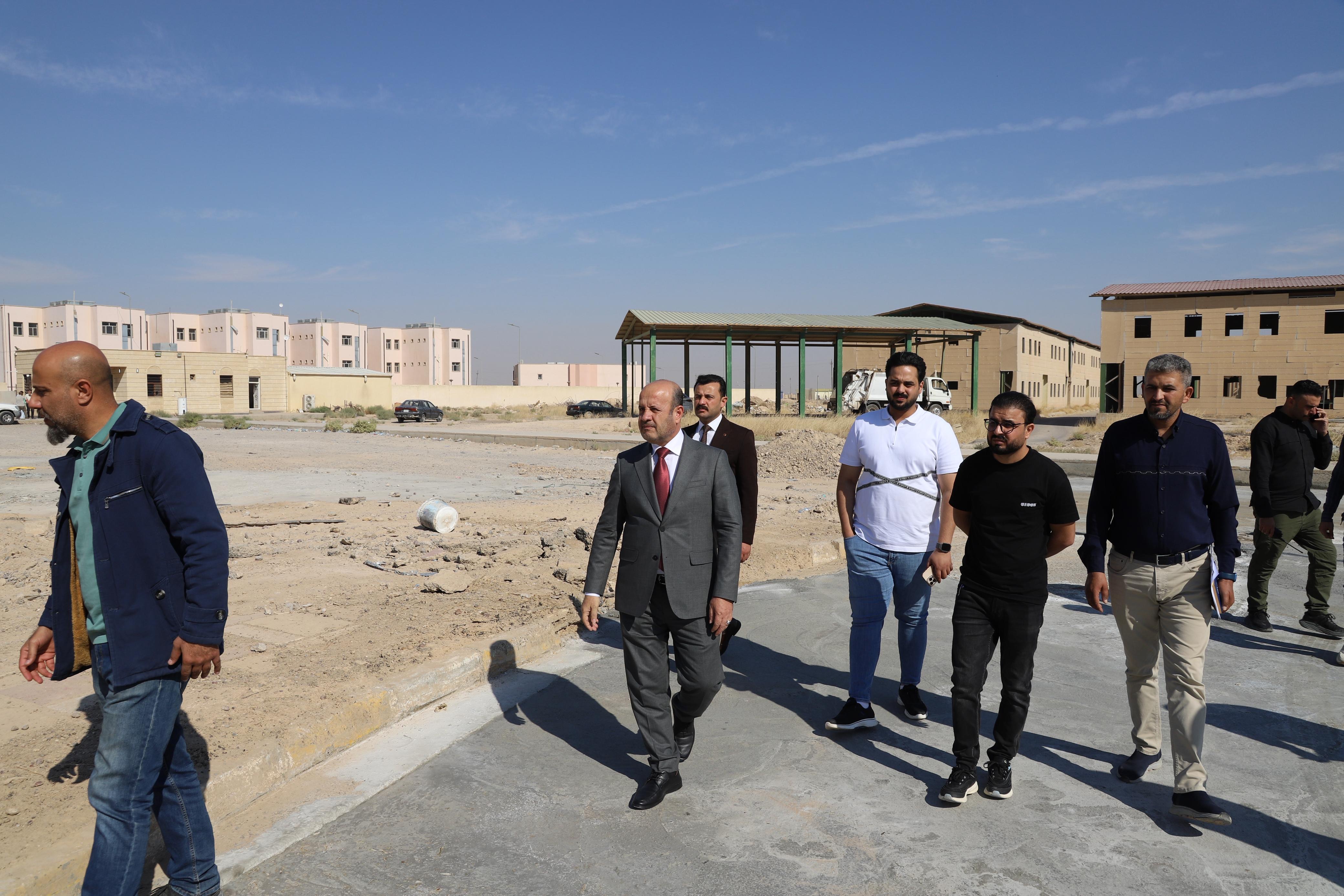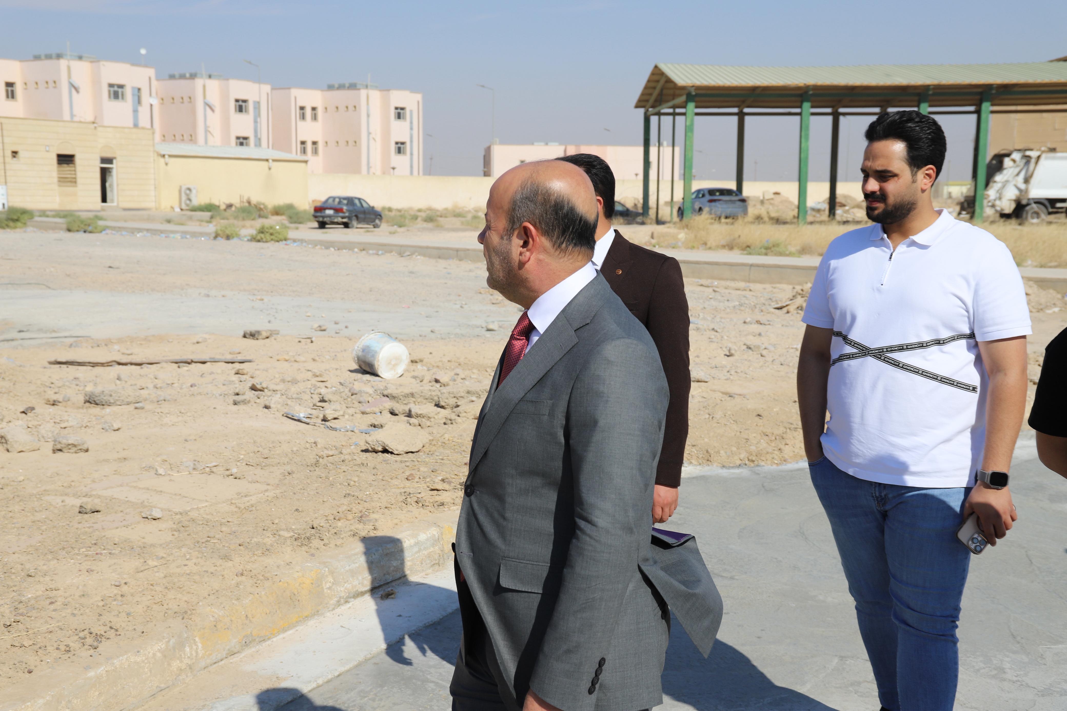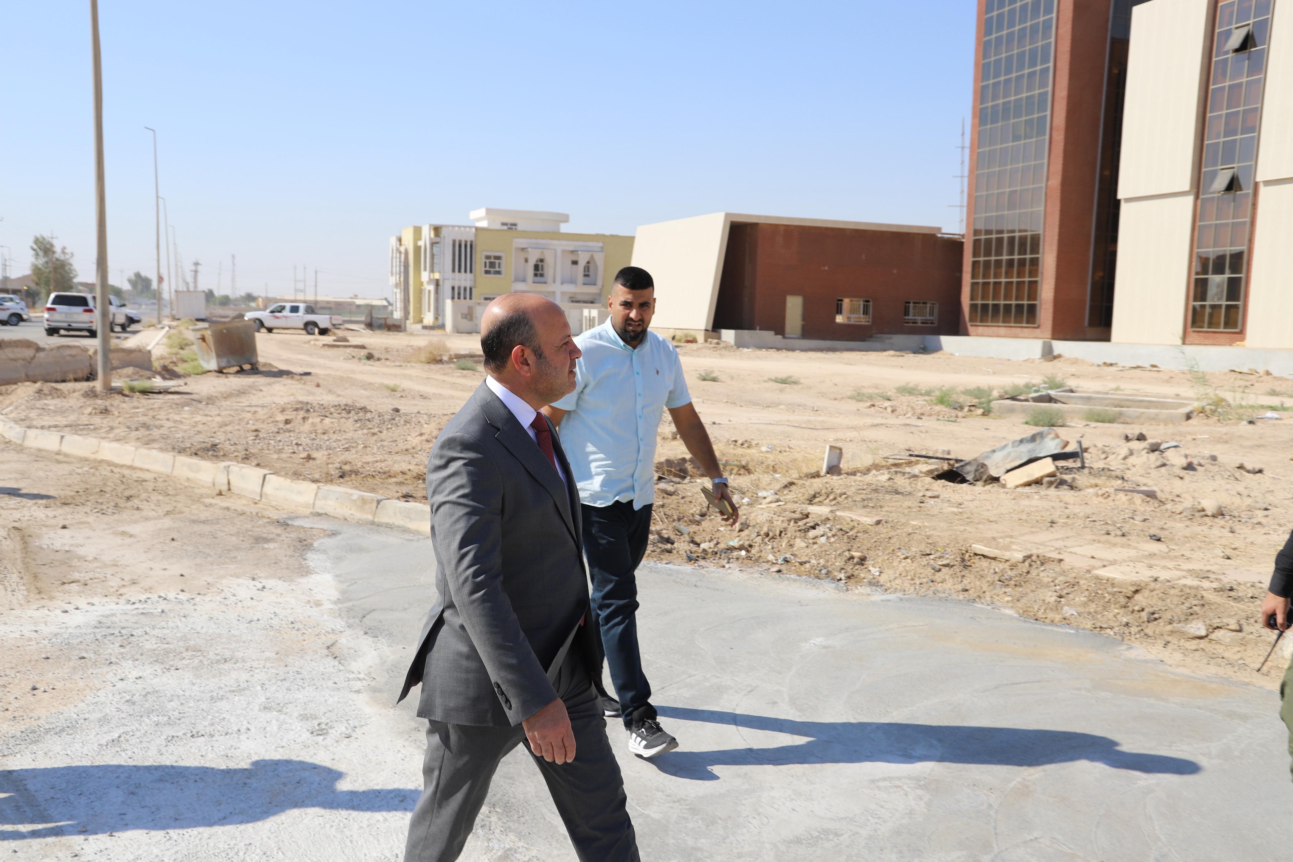 The tour included the Paving and Rehabilitation of Tikrit University Roads Project, one of the delayed projects that had been on hold since 2014. Work on this project was recently resumed through joint efforts between the University Presidency and the Salahuddin Governorate. The visit also covered the rehabilitation and expansion of the main parking area, the parking access road, and the service road within the university.