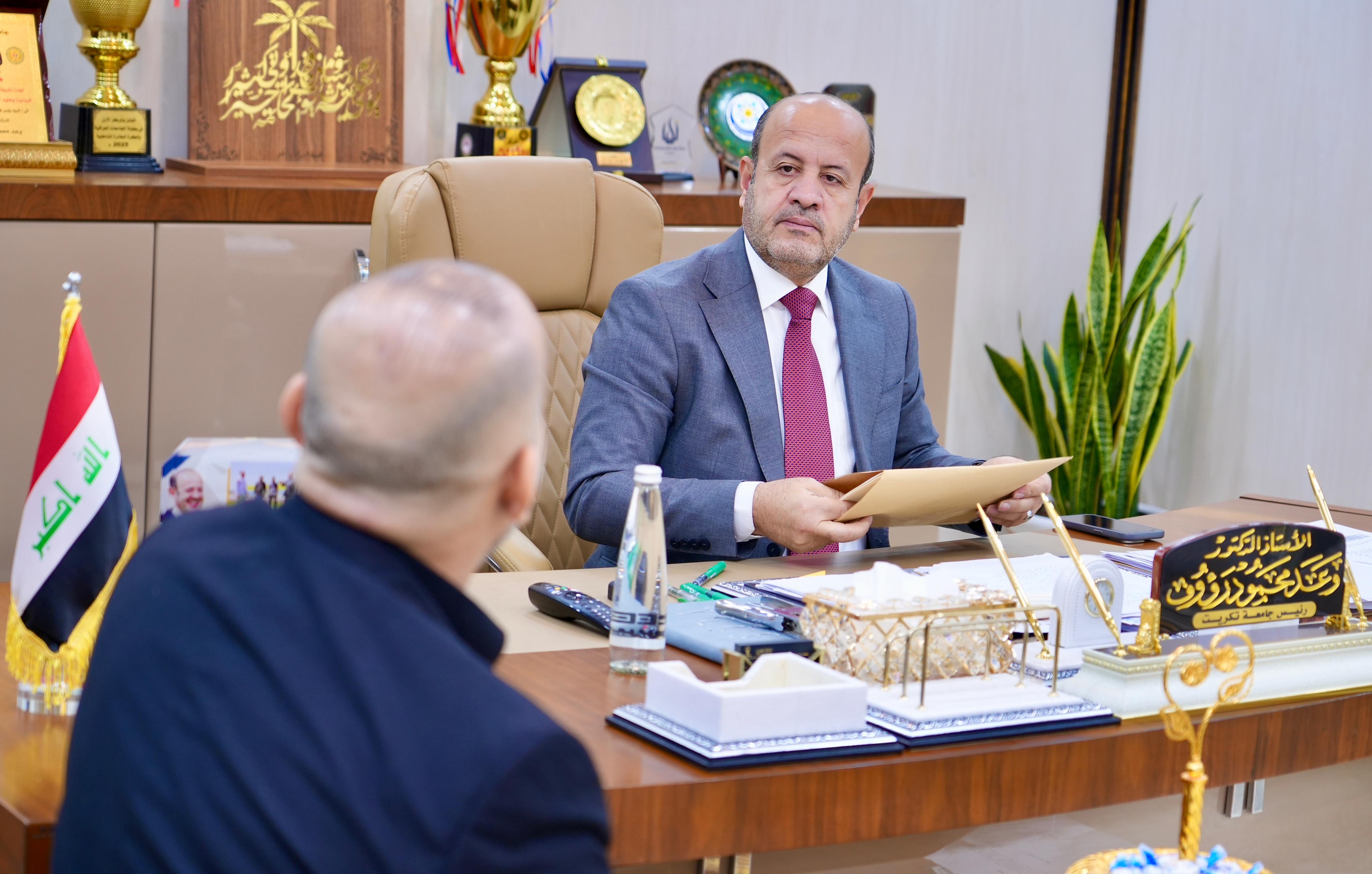 The President of Tikrit University, Professor Dr. Waad Mahmoud Raouf, received today, Tuesday, November 25, 2025, in his official office at the University Presidency building, a number of citizens, university employees, and students, as part of his weekly meeting program organized by the Citizens Affairs Division.