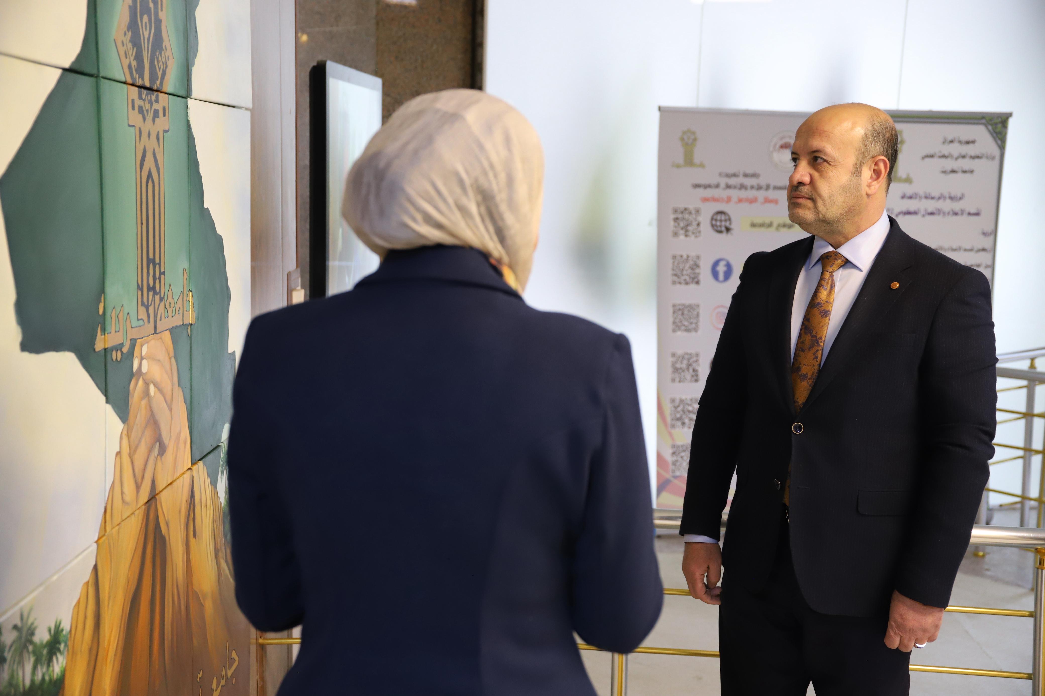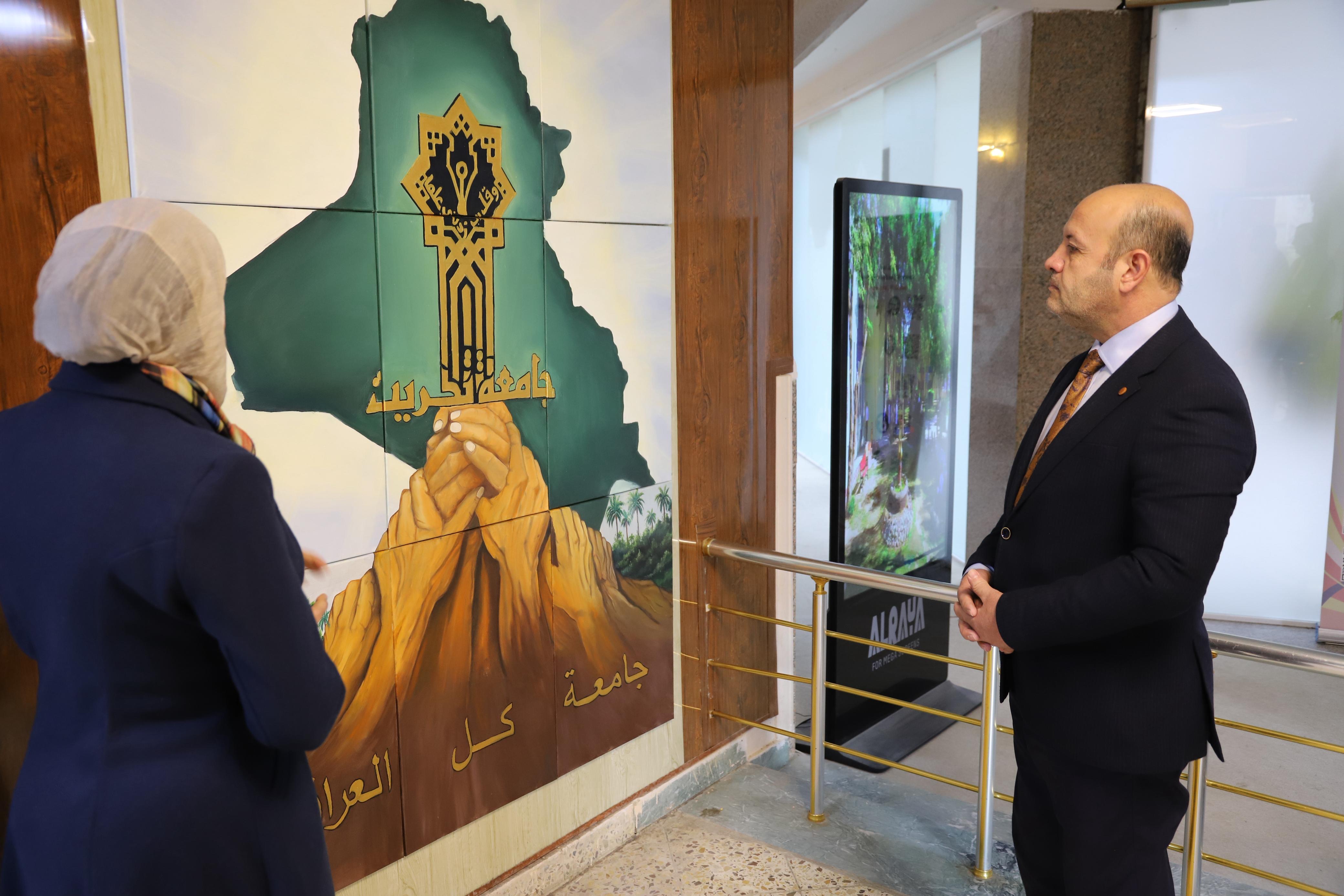 During the visit, the University President emphasized that attention to art and visual symbolism within the university space is an important part of building institutional identity and strengthening national belonging, encouraging the continuation of such creative initiatives that reflect the cultural and civilizational image of Tikrit University.