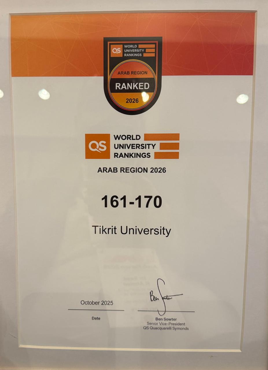 In a step that reflects its continued commitment to academic excellence and the enhancement of scientific research, Tikrit University has made significant progress in the QS World University Rankings: Arab Region 2025, which was officially announced in Muscat, the capital of Oman, in the presence of the University President, Prof. Dr. Waad Mahmoud Raouf.