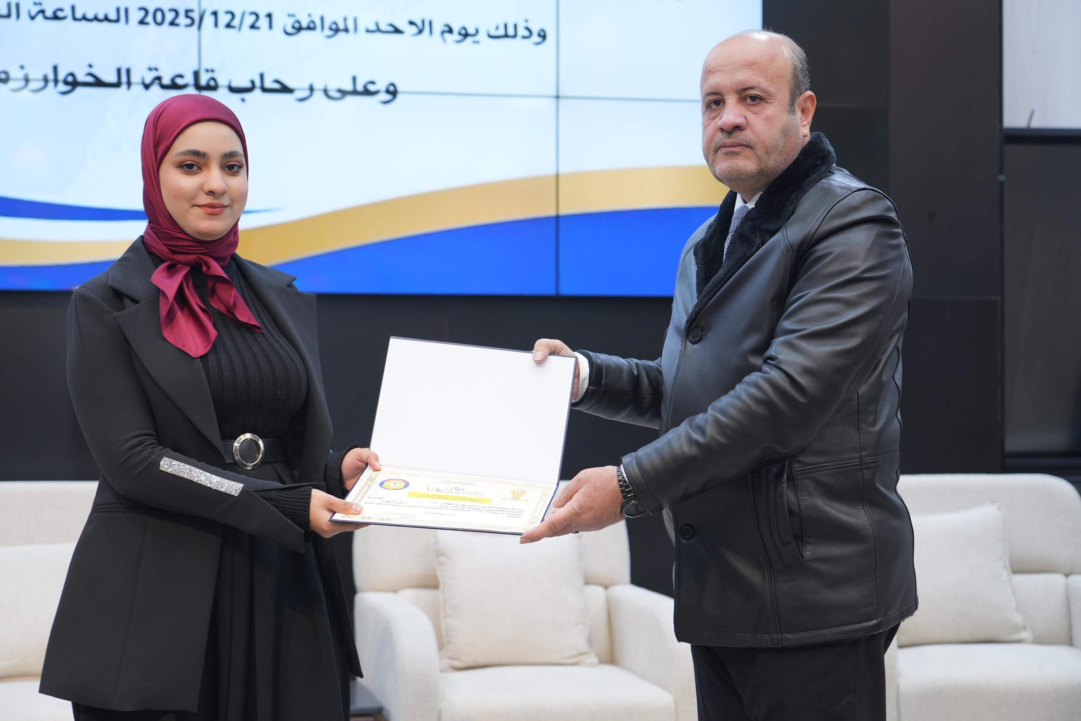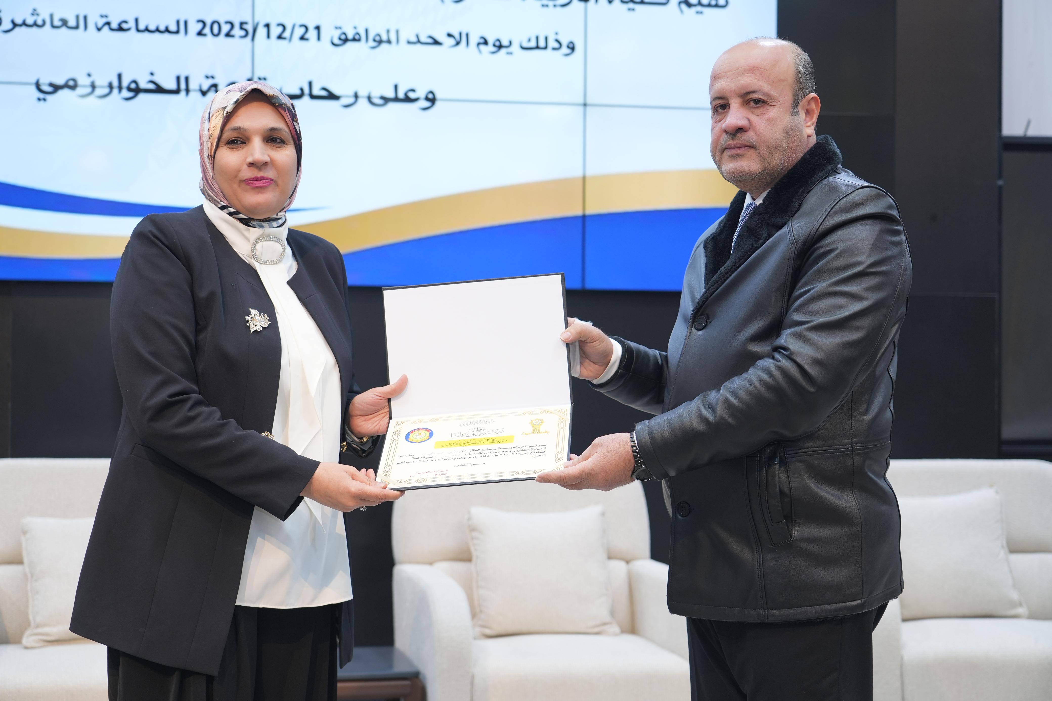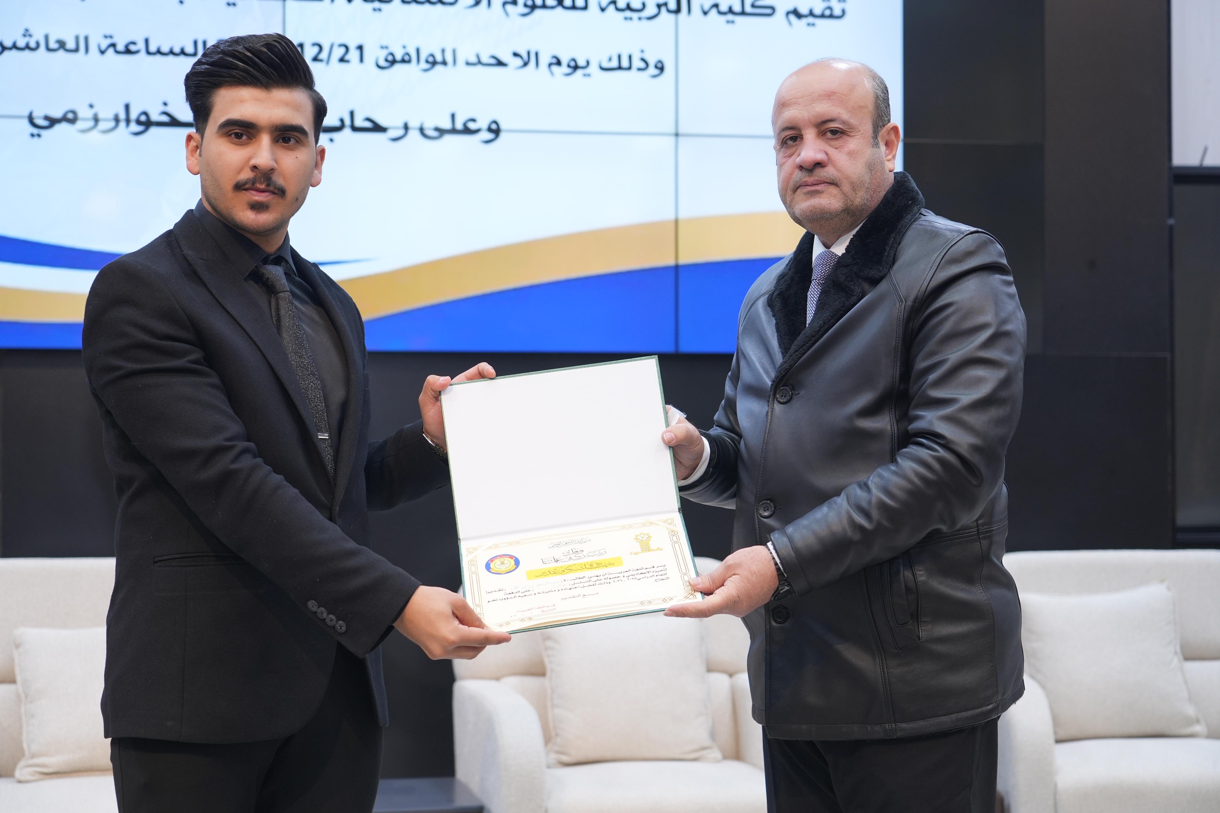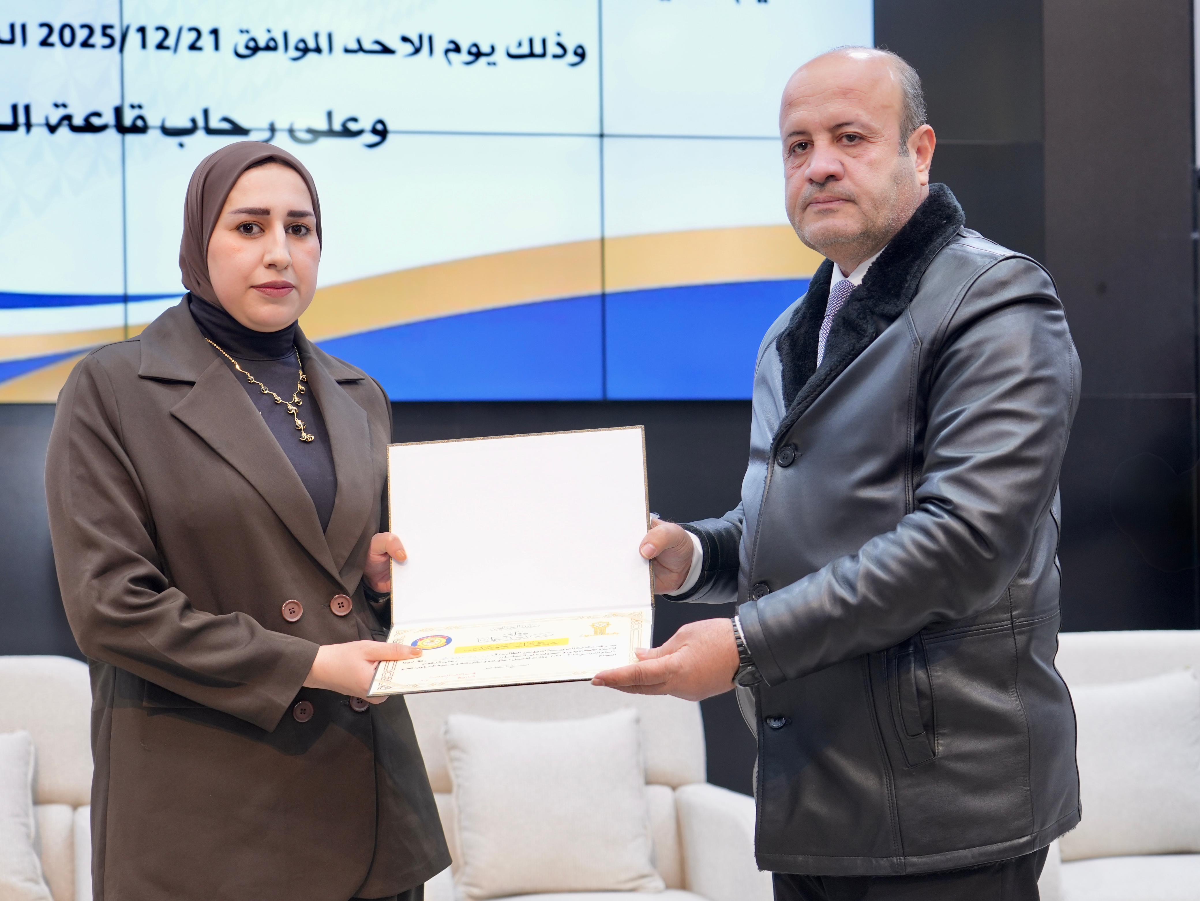 At the conclusion of the ceremony, the President of Tikrit University honored the top students of the Arabic Language Department by awarding them certificates of appreciation in recognition of their academic excellence and as encouragement to continue their academic and linguistic journey.