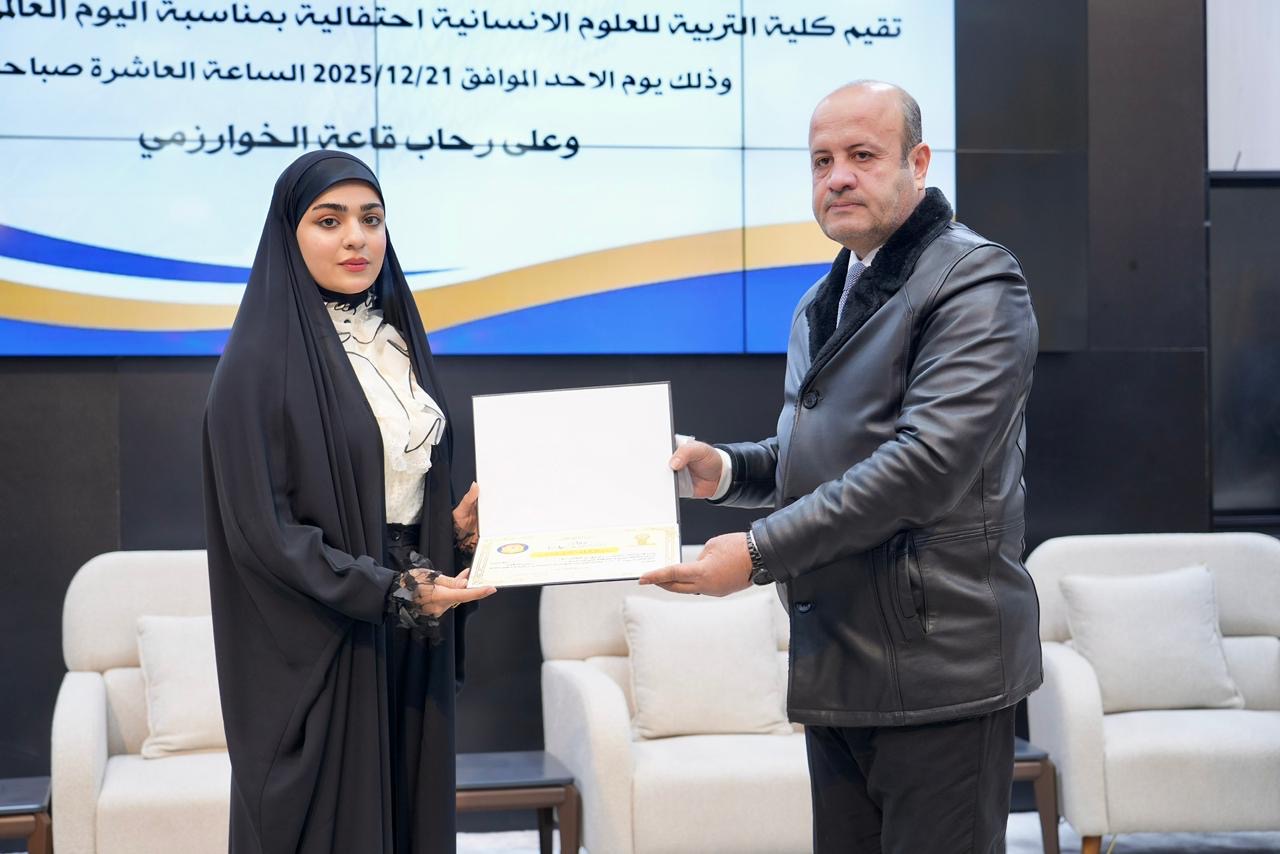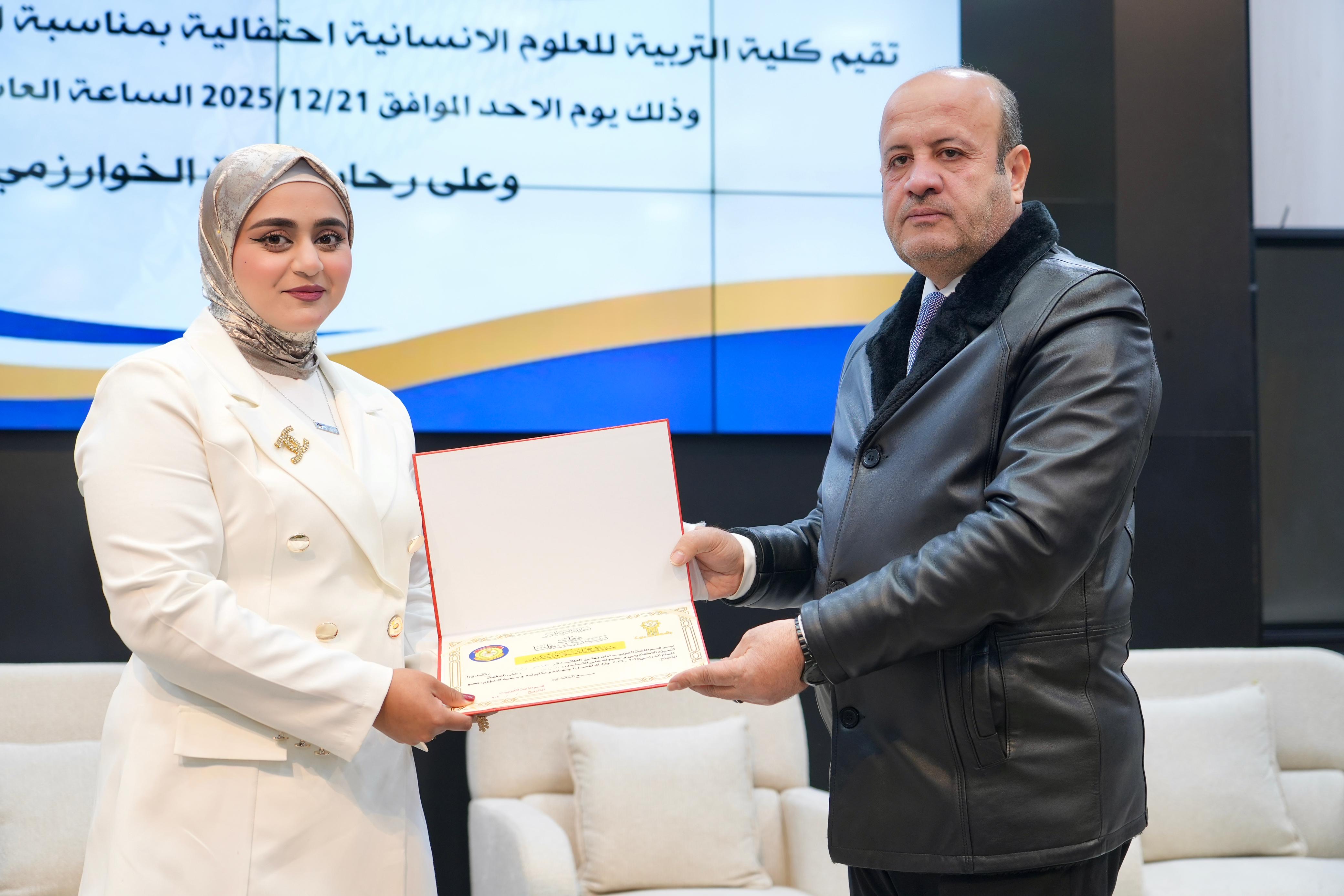 Under the patronage and in the presence of Professor Dr. Waad Mahmoud Raouf, President of Tikrit University, and under the supervision of Professor Dr. Imad Hamid Ahmed, Dean of the College of Education for Human Sciences, the College of Education for Human Sciences held a celebratory event on Sunday, 21/12/2025, at Al-Khwarizmi Hall, marking World Arabic Language Day under the slogan “Our Language Is a Renewed Identity.”